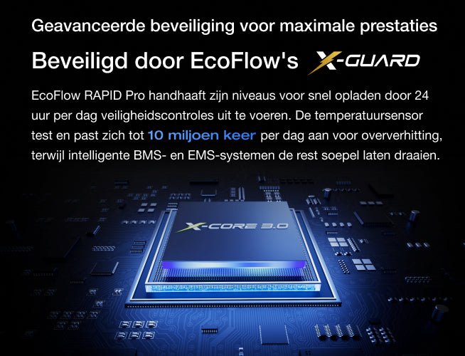 • Alleen compatibel met EcoFlow RAPID Pro X (27.650 mAh) powerbank, EcoFlow RAPID Pro (27.650 mAh) powerbank en EcoFlow RAPID Pro (20.000 mAh) powerbank
