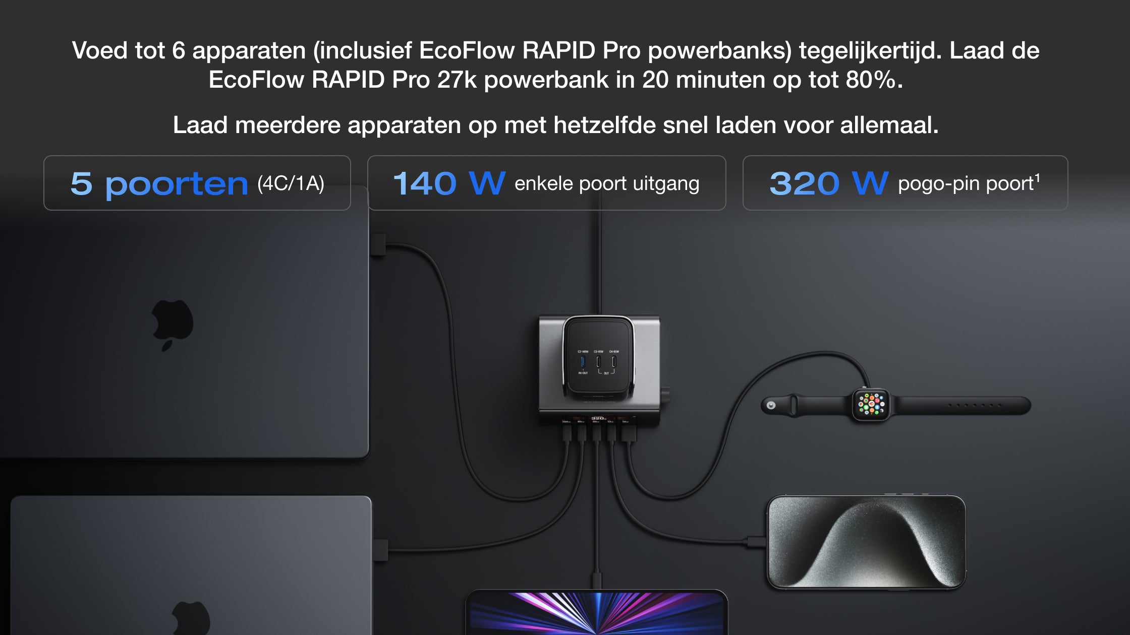 EcoFlow RAPID Pro Desktop Charger: 320W & 5 Poorten | EU – EcoFlow-Netherland